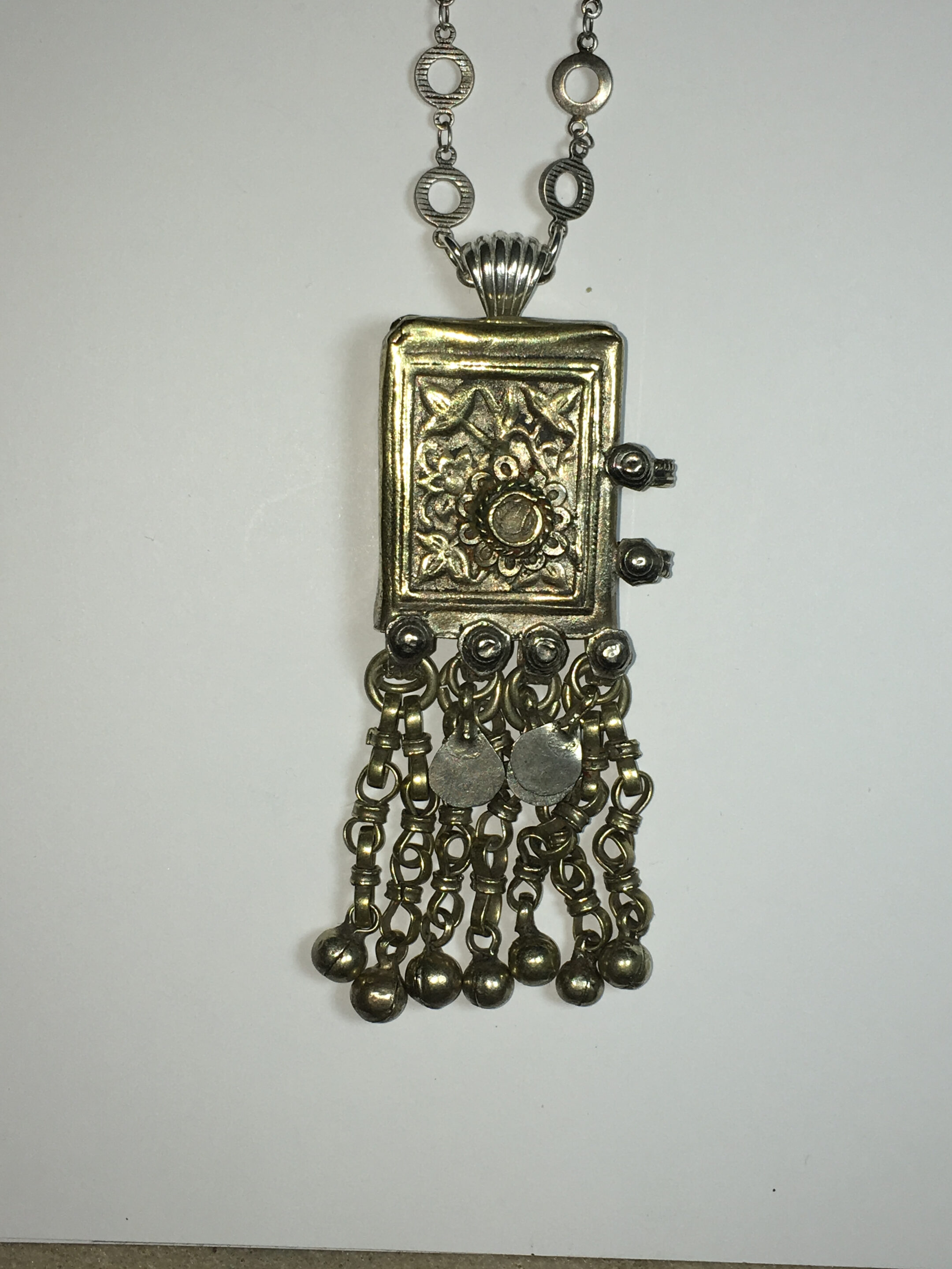 “Bedouin” pendant is made from “Coin” silver and is from the middle east.  Necklace is designed with new pewter chain.
