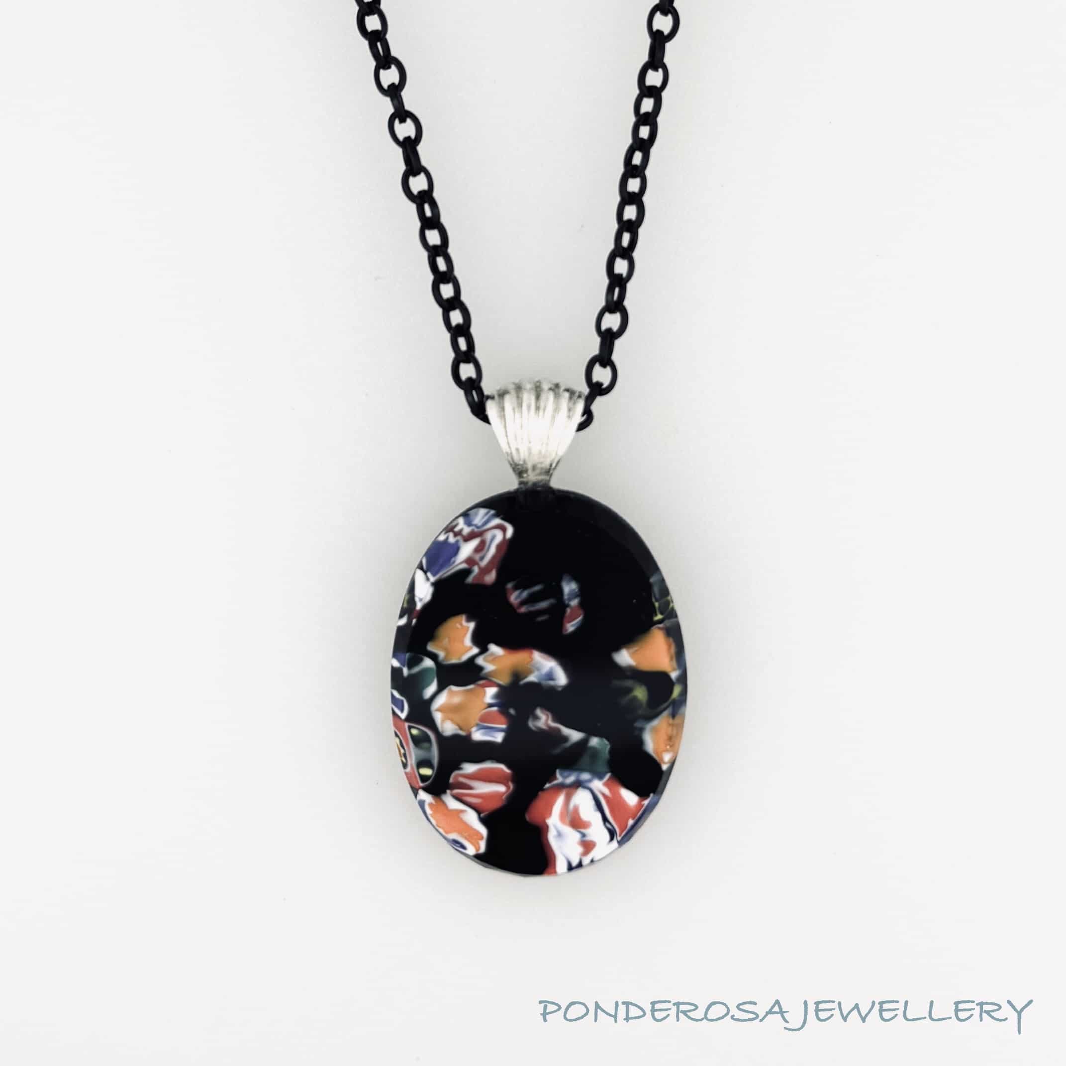 This vibrant Venetian glass Millefiori pendant, which translates to “a thousand flowers” in Italian, is a truly beautiful piece. It has been designed with plated chain.