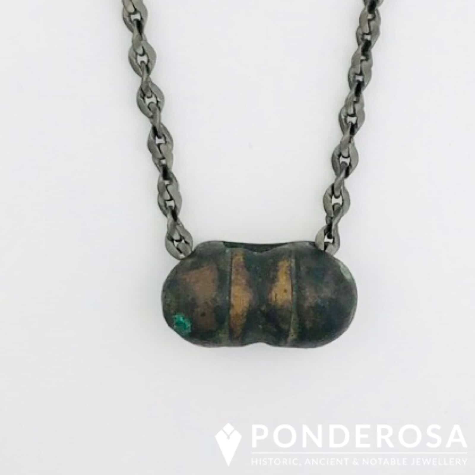 Ancient Greek and Roman medieval bronze, as well as iron artifacts are often found all over Europe. The most common artifacts found are arrow heads, tools, fire starters, ornaments, weapons, buckets, Rings, Bronze Legionary Fibulas/pins used to hold together the Toga/clothing of the Roman soldiers and citizens, and many other interesting items, some still a mystery to what they were used for. A perfect necklace for the history buff.