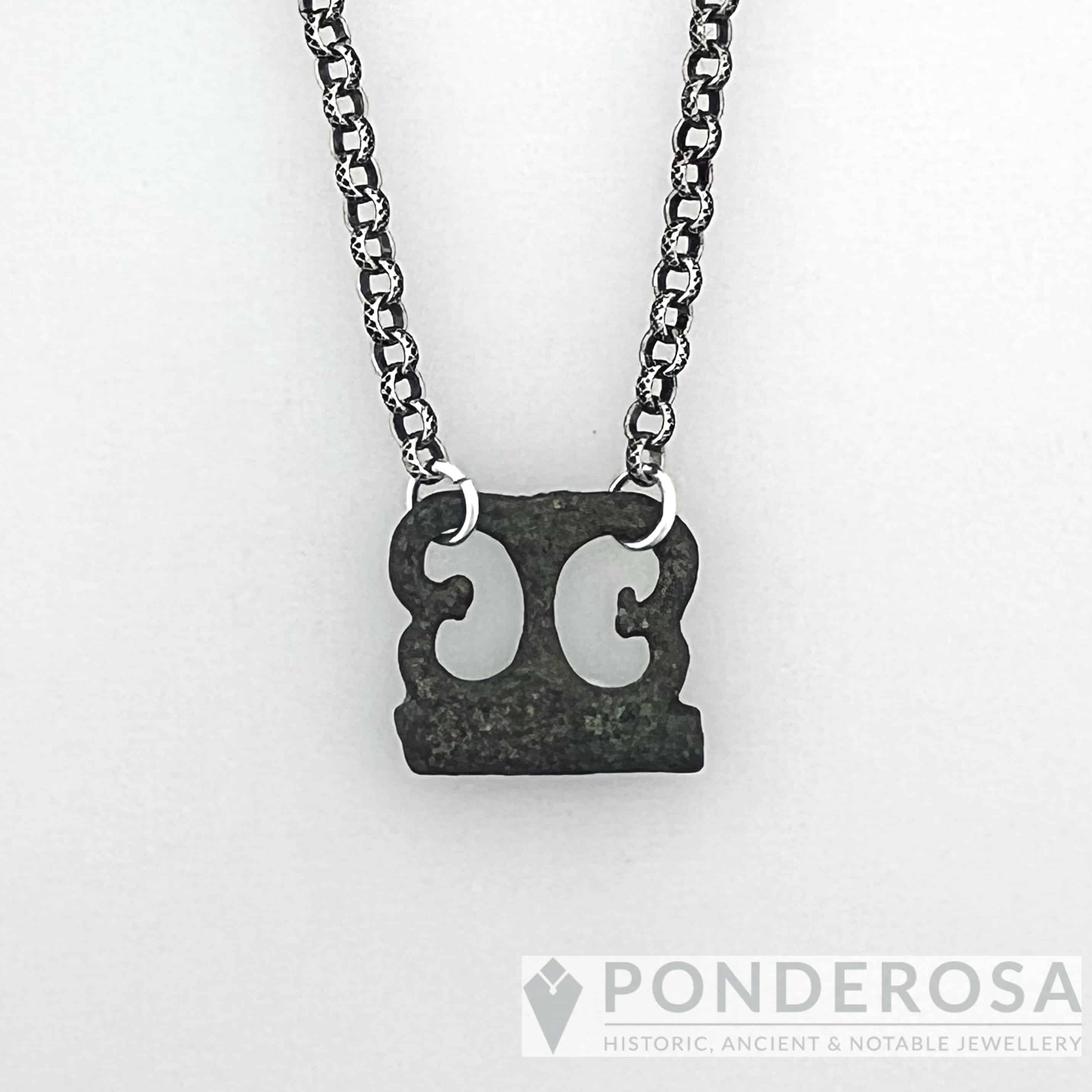 This unique 2000 year old bronze artifact pendant has been turned into a wearable piece of history. It is a one of a kind, magnificent piece, sure to treasured for many years to come. It has been finished with a 19 inch pewter chain.