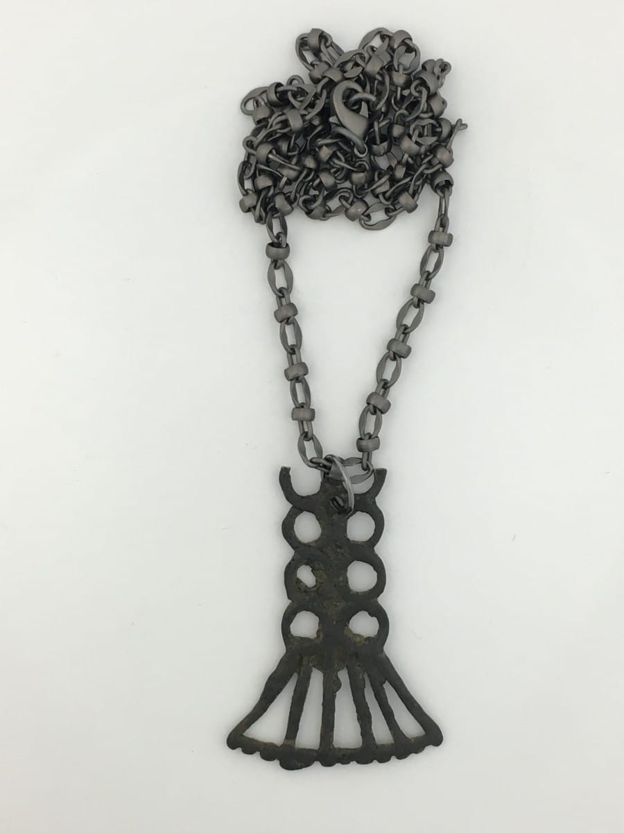 This very unique pendant is a 2000 year old bronze artifact. The necklace has been designed with 21 inches of pewter chain which is lead and nickel free.