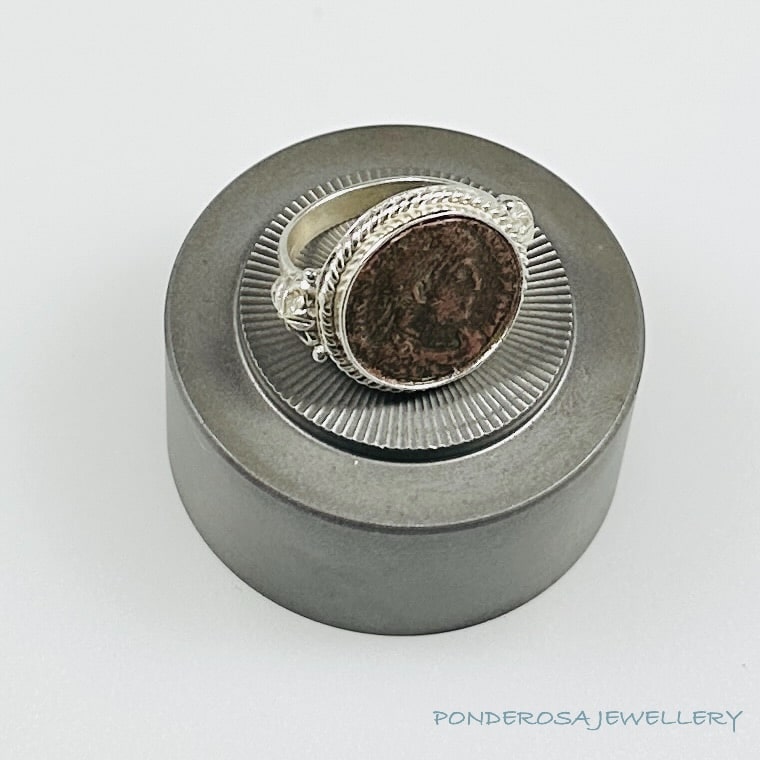 From the time of Augustus to the fall of the Western Empire. Rome’s dominion covered all of the following: England and Wales, most of Europe; coastal northern Africa, together with the adjacent province of Egypt; the Balkans, the Black Sea, and Asia Minor, and also much of the MIddle East. The coinage was minted throughout these regions in many different metals including bronze, silver and gold. This coin, which was been set in sterling silver, is unconditionally guaranteed to be authentic.