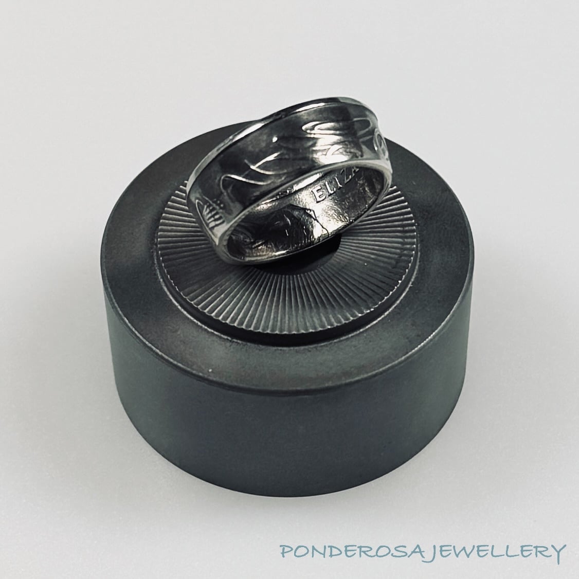 This 1975 Coin from Australia has been turned into a size 8 1/2 ring and has a copper content of 75 %. Enjoy wearing this very unusual piece of History.