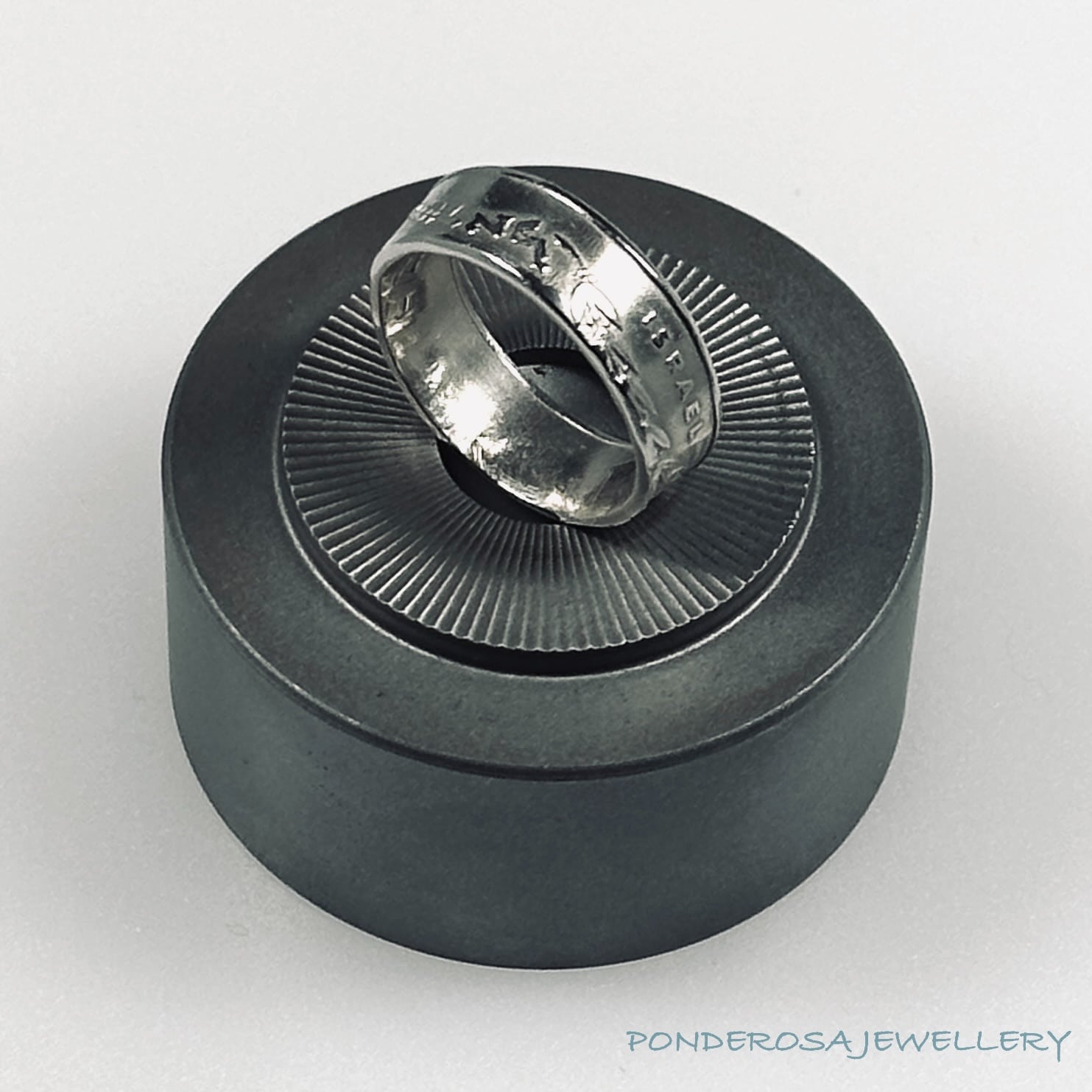 This Coin from Israel has been turned into a size 7 ring and has a copper content of 75 %.  Enjoy wearing this very unusual piece of History.