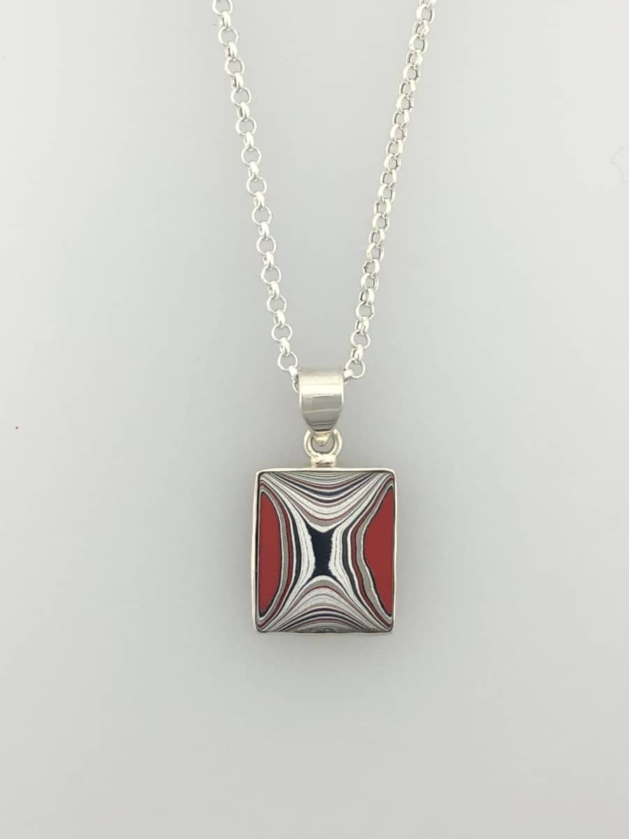 Fordite Pendant – Red, White and Black Square