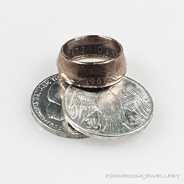 This Bronze 1963 coin has been turned into a size 7 ring and is 96 % copper. Enjoy wearing this unusual piece of history.