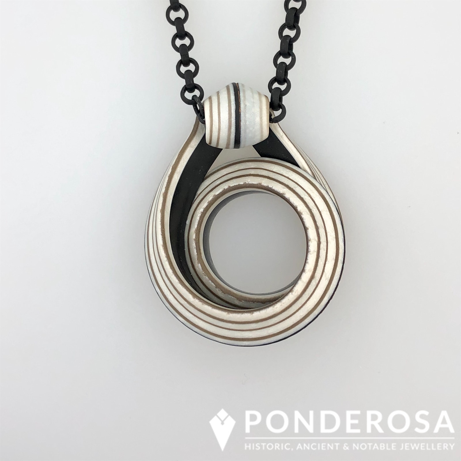 This one of a kind “Polymer Clay” pendant in gold and black tones has been designed with a 20 inch matte black chain. This simplistic design showcases the beautiful hand made pendant as the focal point. This lovely piece of jewellery is versatile and reversible making a statement however you choose to wear it.