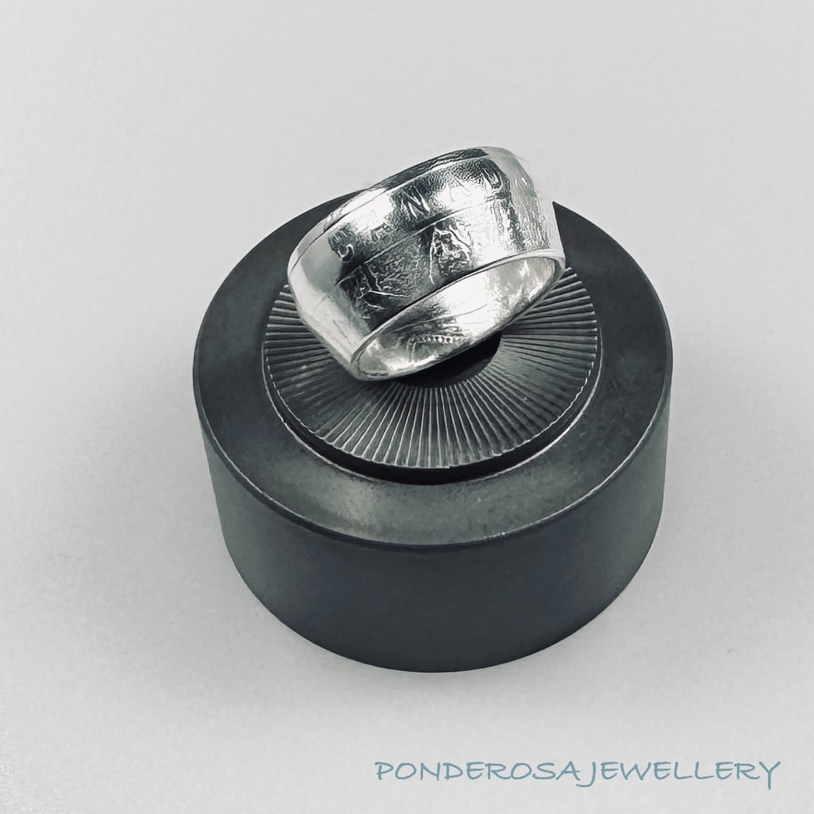 This 2014 Silver Coin from Canada has been turned into a size 8 1/2 ring and has a silver content of 99 %. (1/2 ounce). This Royal Canadian Mint Coin is from the “O Canada” – Down the Old Maple Tree, Collection.