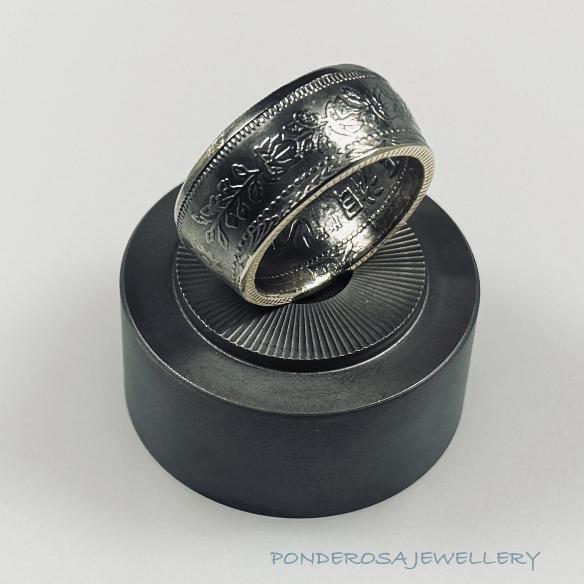 This Feng Shui Chinese “Lucky” Coin has been turned into a size 13 3/4 ring and has a silver content of 80%. Enjoy wearing this very unusual piece of History.