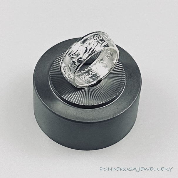 This 1949 Silver Coin has be turned into a size 9 1/2  ring and has a silver content of 80 %. Enjoy wearing this very unusual piece of History.