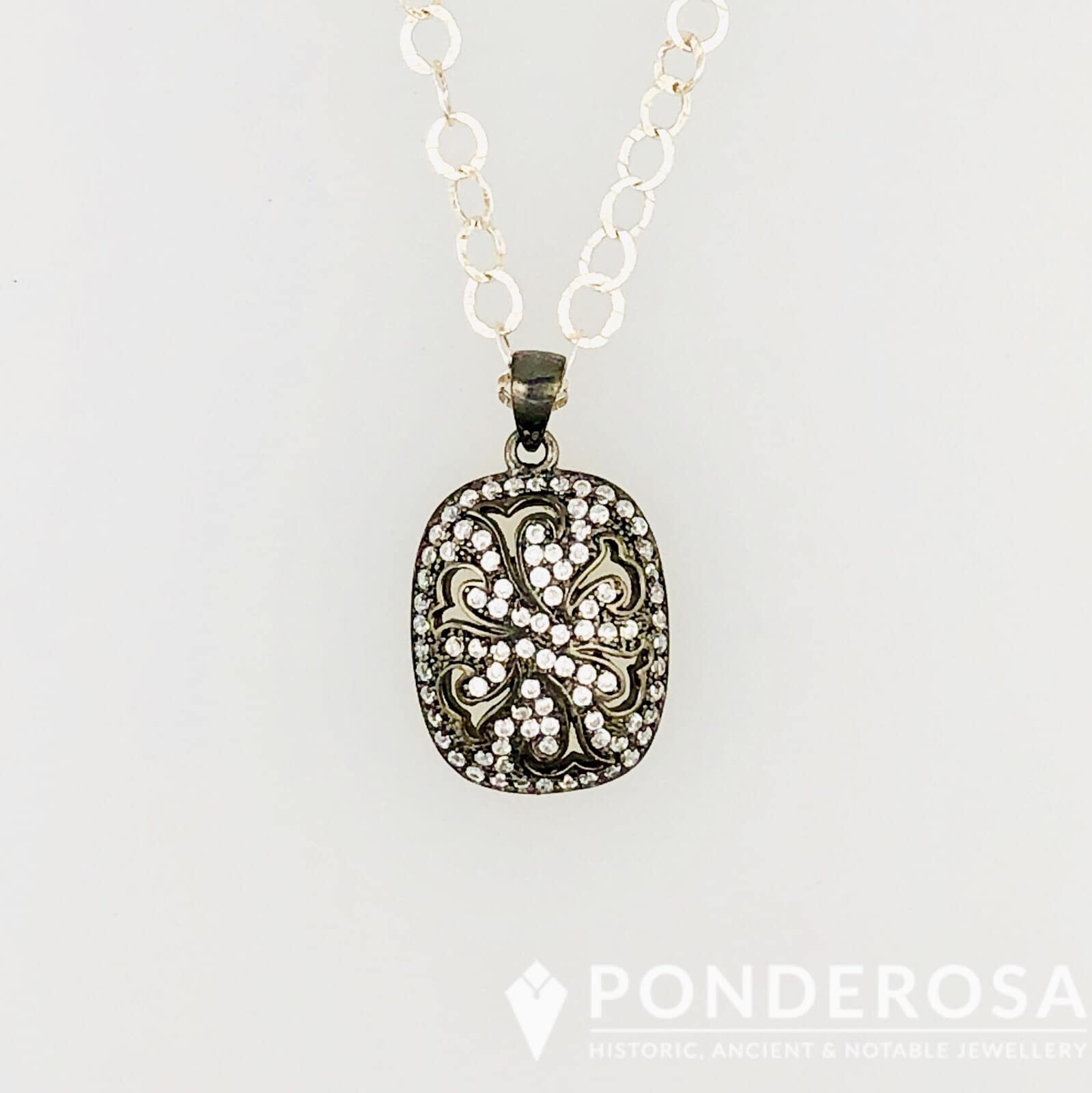 This sparkling sterling silver and crystal pendant with unique design has been paired with a sterling chain.