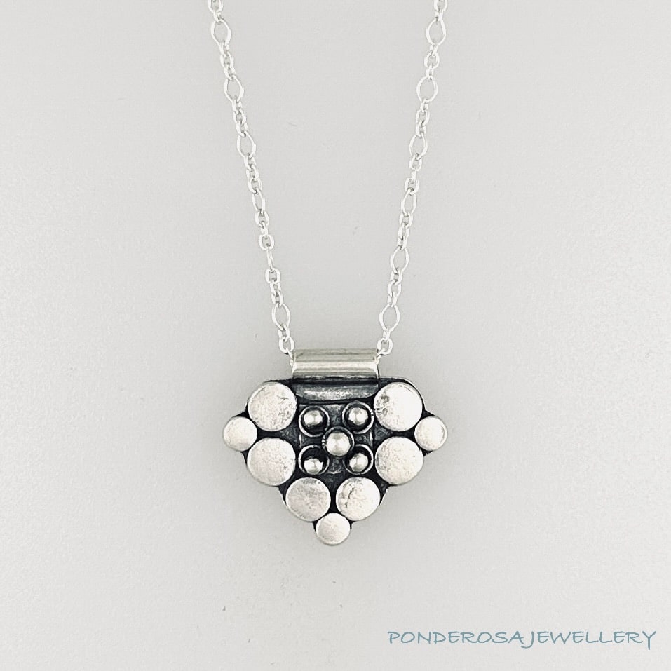 This charming and unique sterling silver pendant has been designed with a Sterling Silver chain. Necklace length: 18” Necklace material: sterling silver Pendant size: 3/4 ” tall x 1″ wide Pendant material: sterling silver