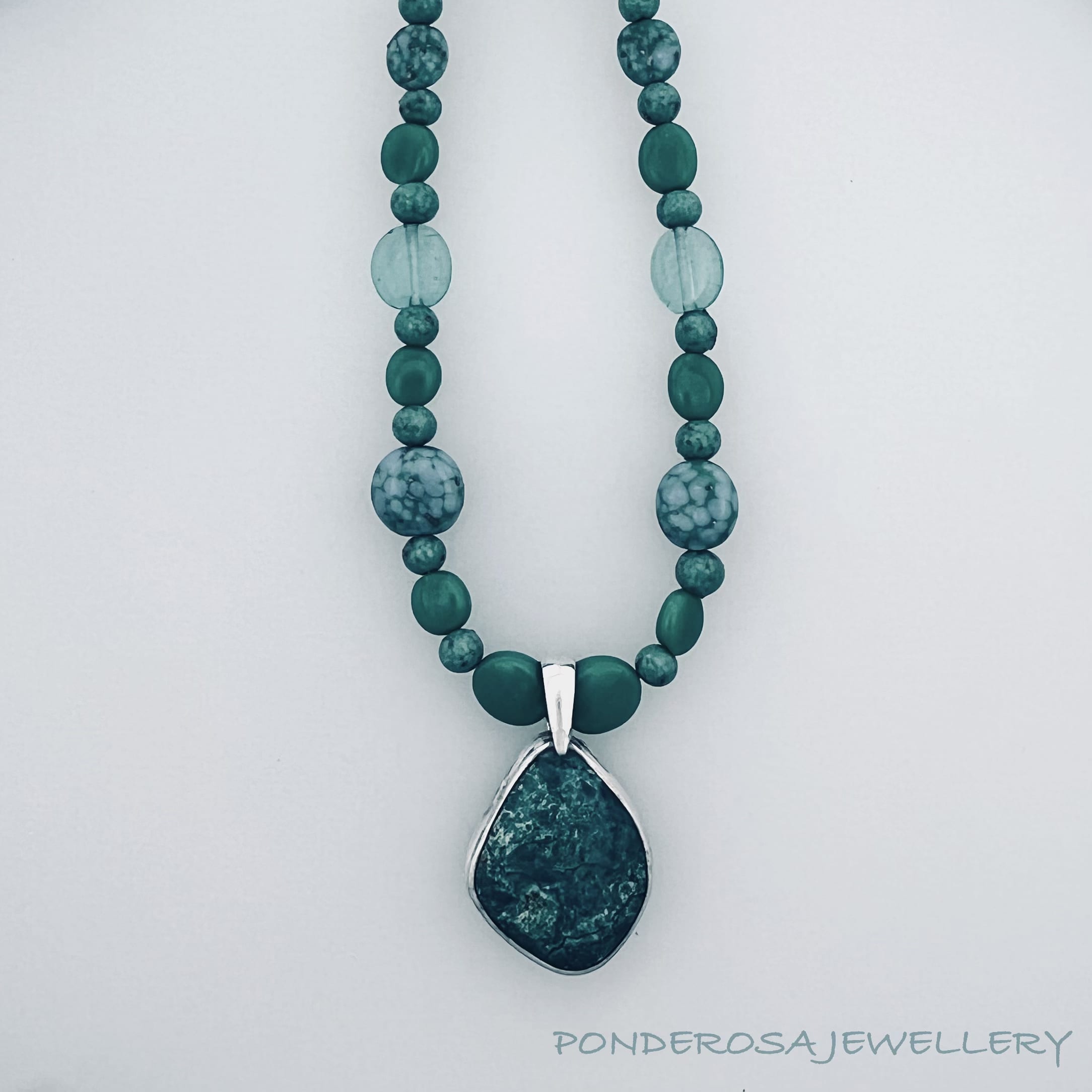 This pretty and charming necklace has been designed with a stone pendant and Venetian Glass beads.