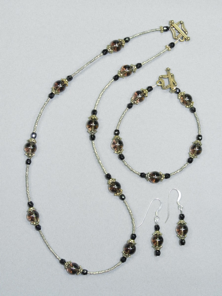 This historical jewellery set is made from round topaz stone beads, metal bead caps and crystals, as well as small metal beads from the 1800’s.
