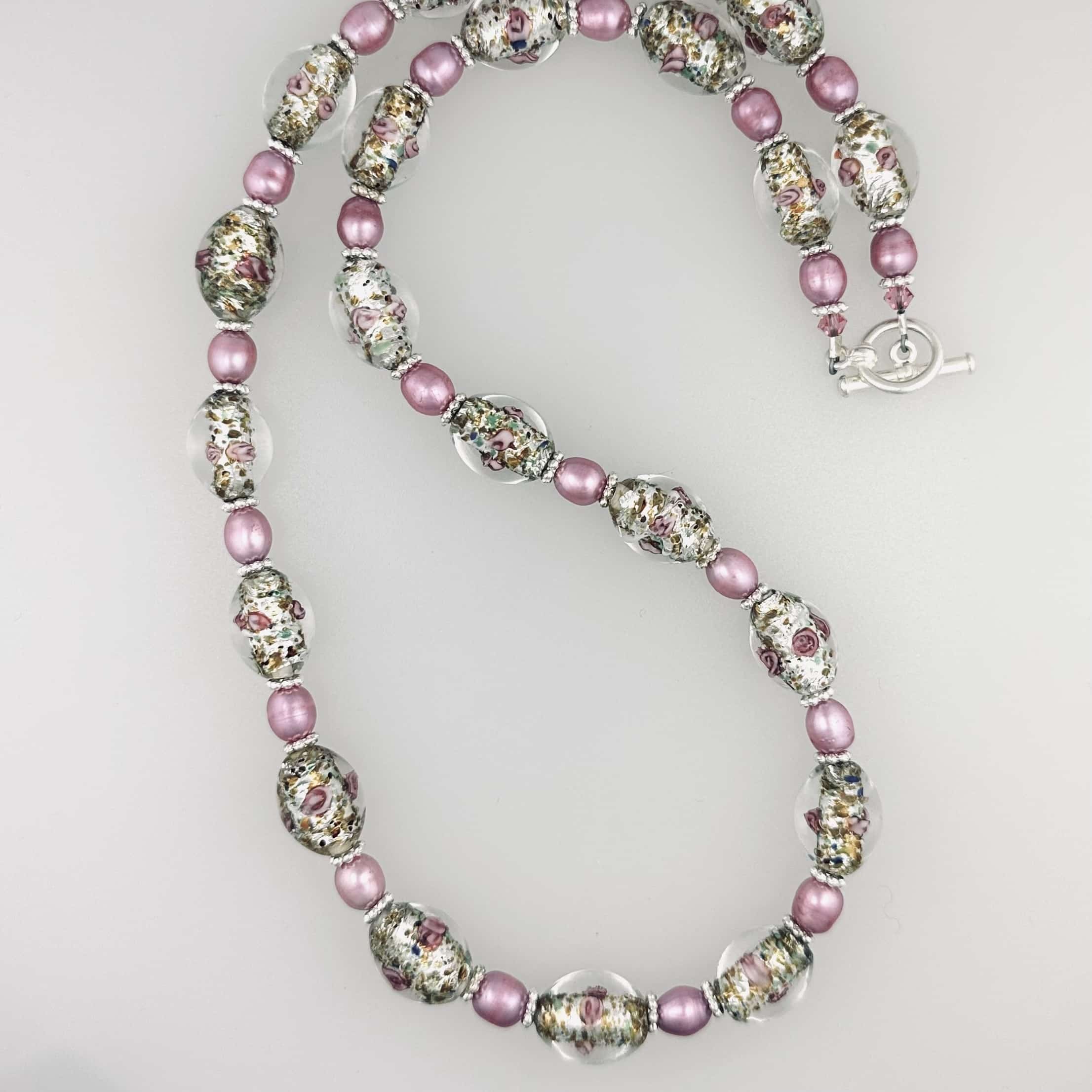 - Necklace material: Freshwater Pearls and Venetian Glass