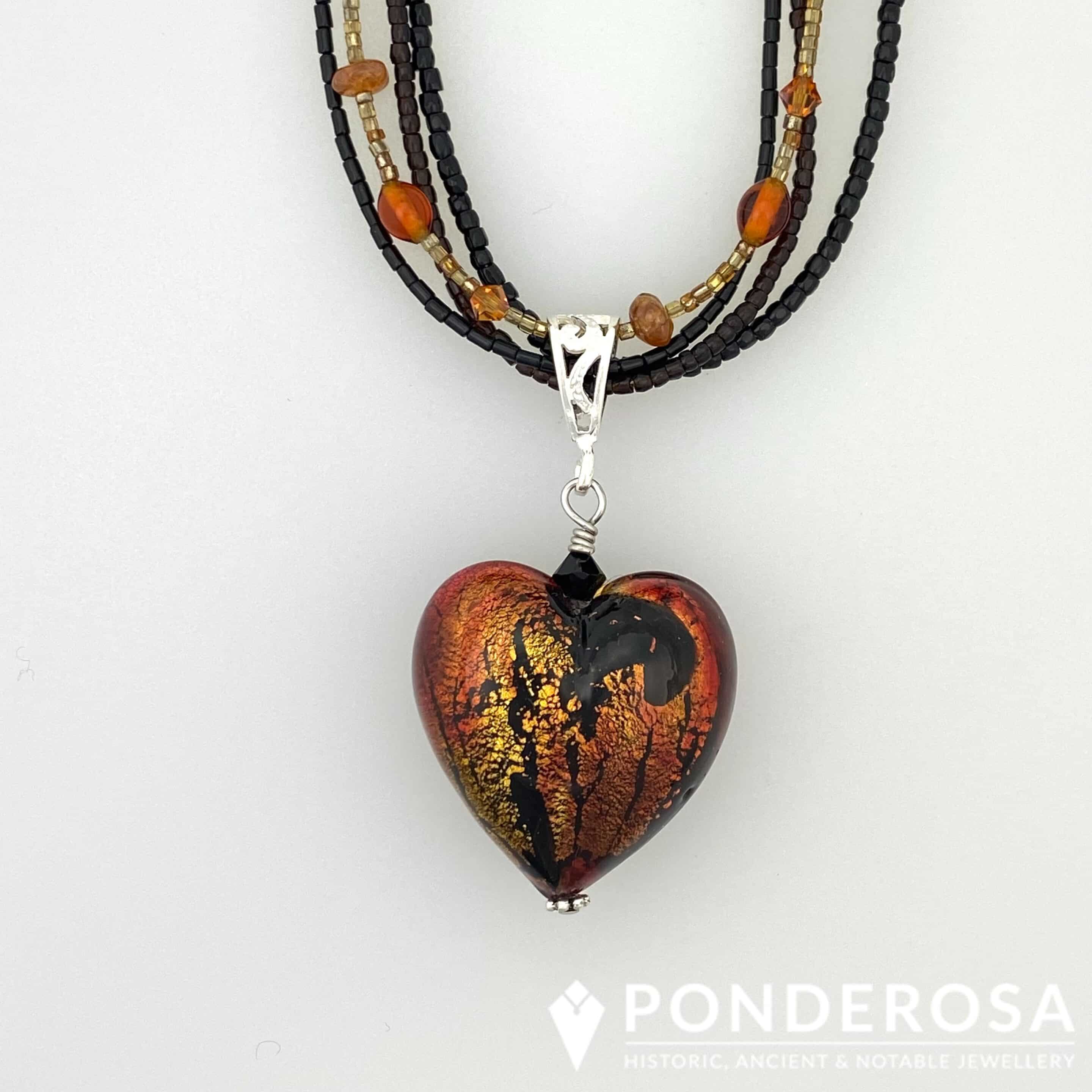 This Venetian Glass Heart has been designed with vintage glass seed beads, Swarovski crystals and small glass beads.