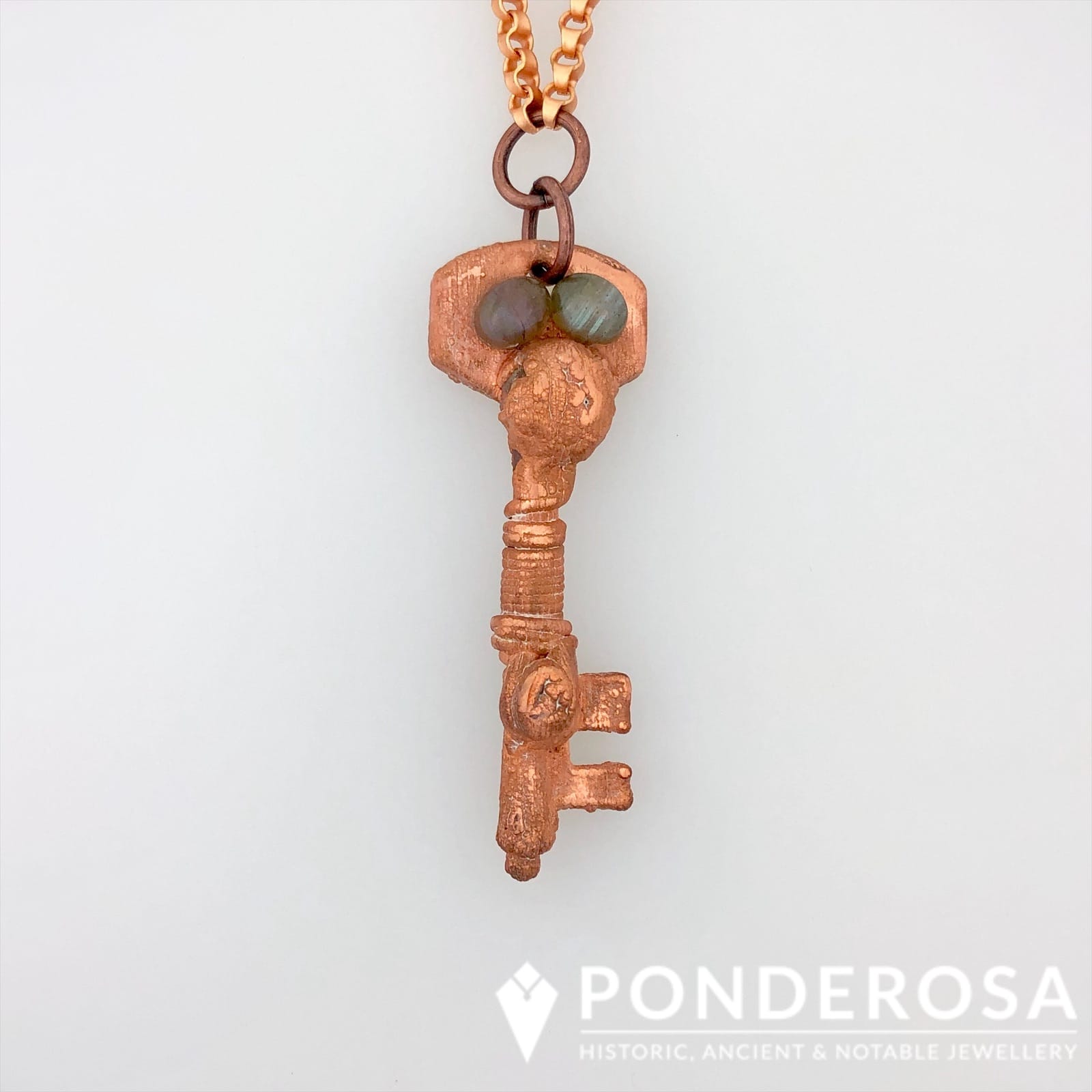 This Copper Enamelled Vintage Skeleton (1920’s) has been designed with labradorite stones and a copper plated chain. It is an unusual “take” on a piece of jewellery that reminds us of a time not long ago.