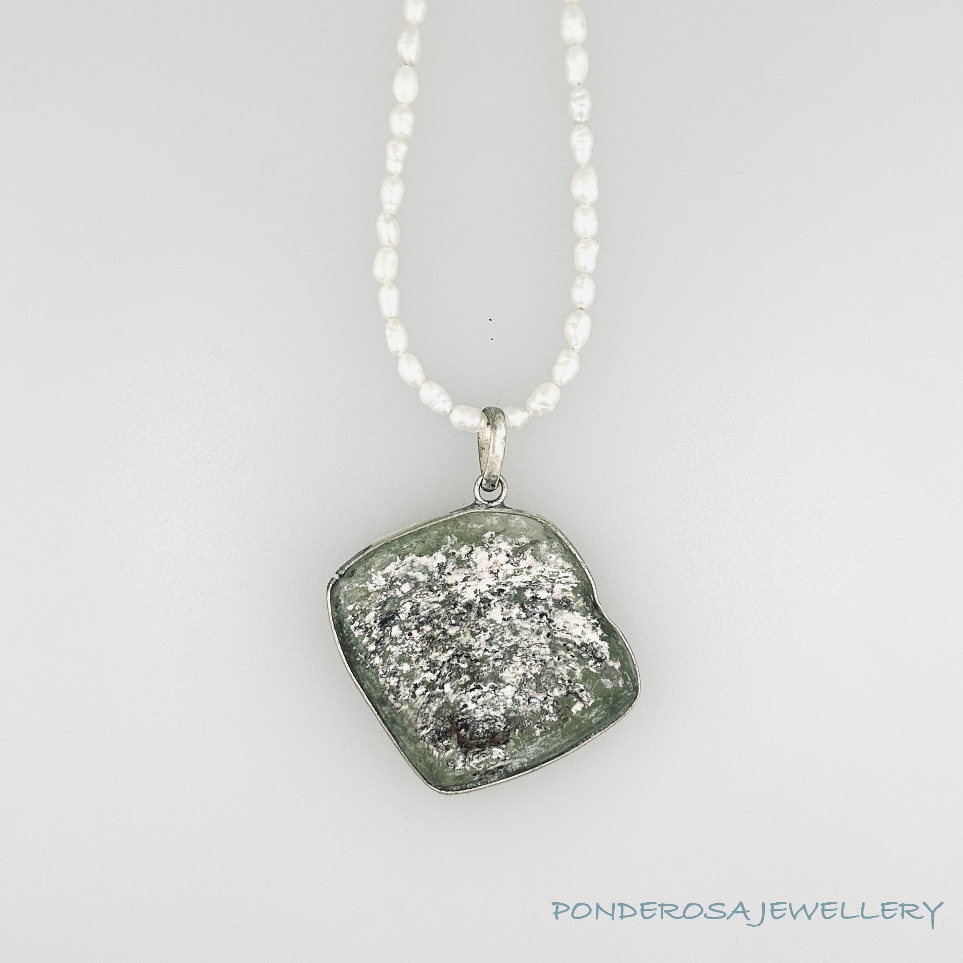 This gorgeous freshwater pearl necklace has been designed with a piece of 2000 year old Roman Glass from the Middle East. This is a special piece of jewellery to add to any collection.